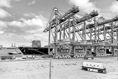 山东青岛港自动化码头装卸集装箱。光明图片/视觉中国