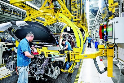 近年来,西部陆海新通道重庆不断推动汽车产业高端化发展。图为工人在重庆赛力斯汽车超级工厂作业。新华社发